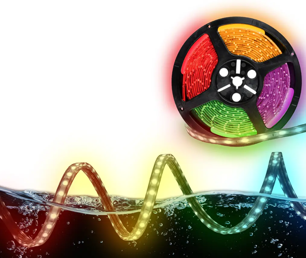 This accent lighting is just what you need for the outdoors. It will create a beautiful and peaceful environment for you to relax in. Put on any color you would like, or a setting and just Aip the switch on. These strips are perfect for the outdoors due to the protective material over the LED lights that protect it from water.