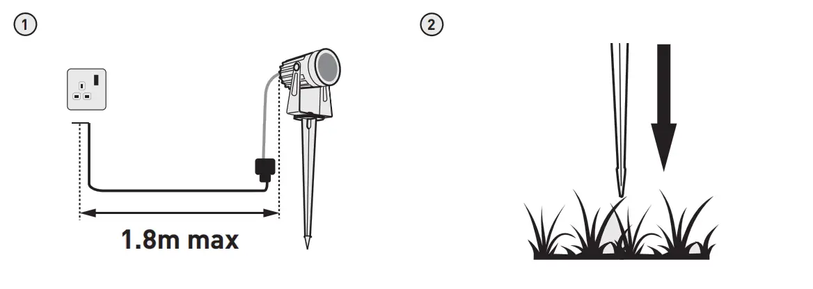 Extend distance between Spike Lights max. 1x extension cable (2 metres total)