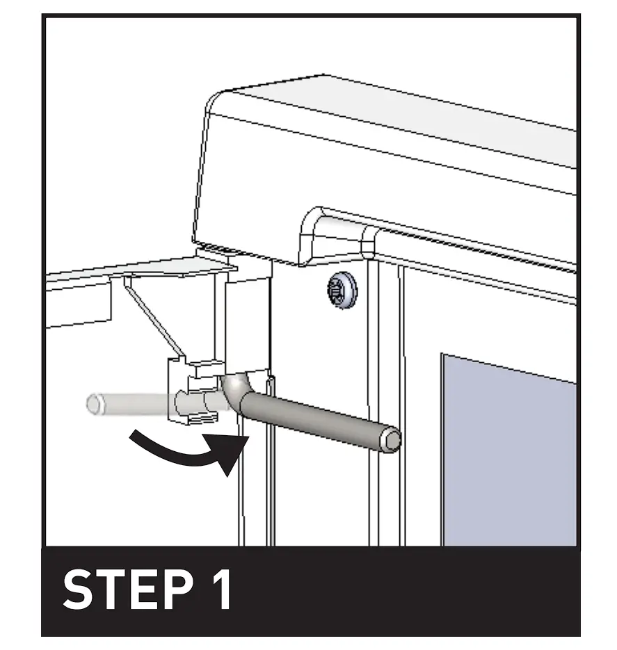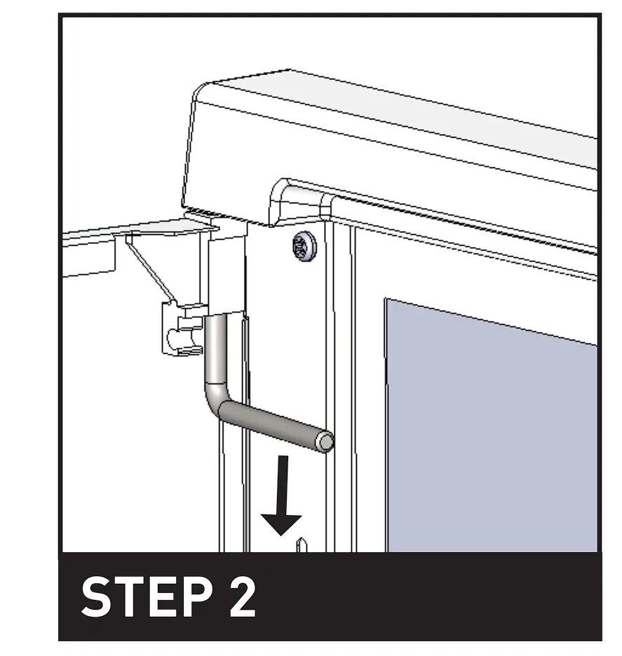 Slide pin down to release door. There is no need to remove pin completely.