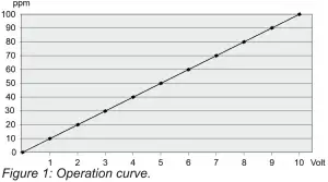 | Signal transmission to the control unit | 0 V to 10 V corresponds to 0 to 100 ppm |