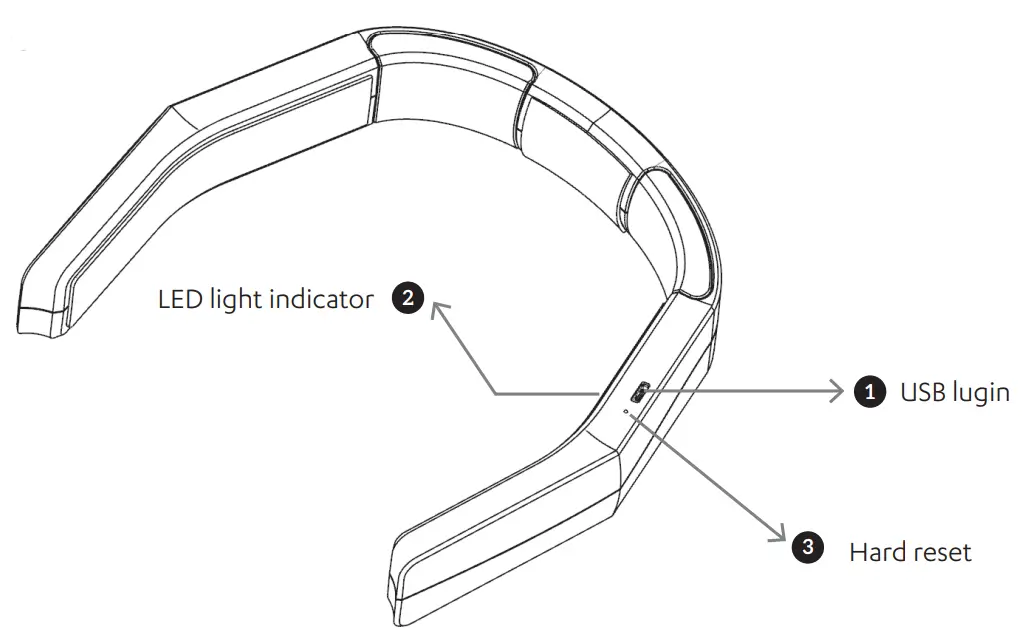 For the first use, you need to charge your NeoRhythm via the micro USB port on the headband (number 1). The device will be fully charged in approximately 2.5 hours. Open the application, accept the terms of use, and click Easy login. That click will lead you to the 5 usage guides windows, so after a read click NEXT, and on the last window, click Finish Guide. Now you are on the home page of the app, so click the button CONNECT. The app will recognize NeoRhythm and connect it to the phone in the background. When connected, the button will change from CONNECT to CONNECTED. If you have more than one NeoRhythms, a pop-up with a device selection will appear, so choose one of the devices and the pairing will occur automatically. The led light on the headband will start blinking orange every second. Click NEXT. Here you can change the settings (light refers to whether or not the led light will be on, Vibra – should the device vibrate or no when a program starts and ends, and stimulation status referring to whether or not NeoRhythm’s Bluetooth® will be ON or OFF). All three settings are ON by default, and can, later on, be manipulated by clicking Settings in the menu (make sure you are connected to the device to be able to change the settings). After managing the settings based on your needs, click SELECT PROGRAM. Chose the desired program from the list. Click on the desired stimulation duration and click SELECT. All you need to do now is to double-tap NeoRhythm right next to the led light, and your chosen program will start (confirmed by 1 short vibration). Tapping NeoRhythm twice is like pressing a start/stop button. The start of the program is confirmed by one short vibration, the interruption or end of the program is confirmed by two short vibrations. Follow the LED light indicator (number 2) to check the status of the device. Blinking green 1 blink per