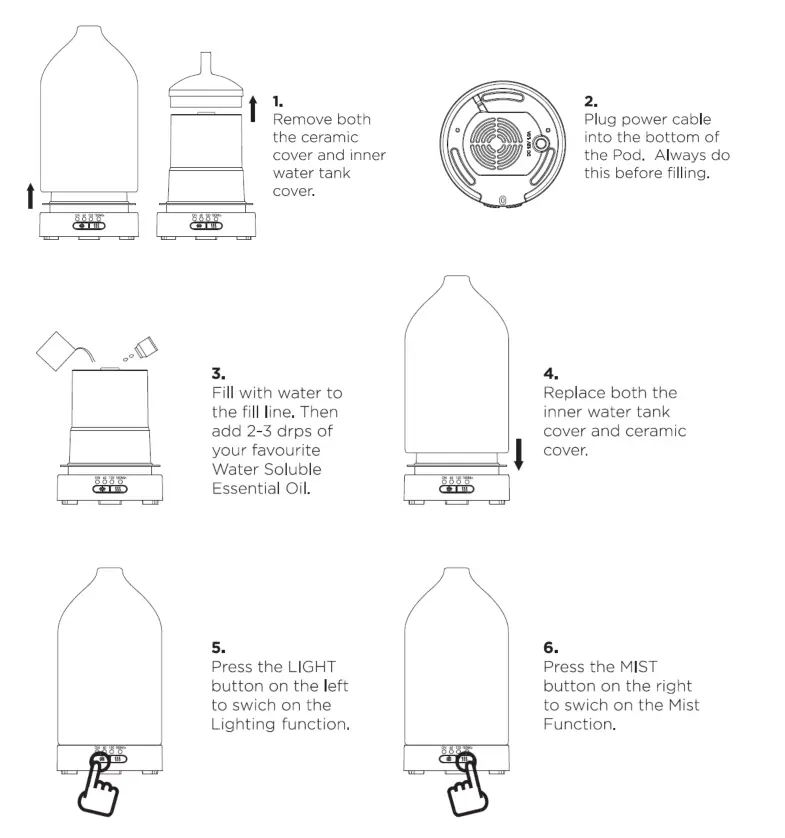 - Press the mist button a 5 th time to turn the diffuser off.