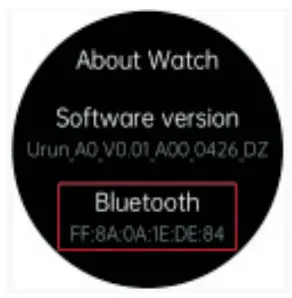 ② In the watch, enter the Settings about watch View Bluetooth address