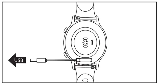 Connect and charge the watch according to the picture. It needs to be charged to activate the watch when it is started for the first time.