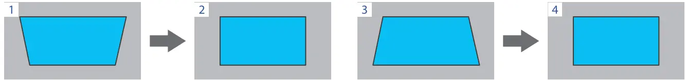 - Step 3: If the picture is shown as picture (1), use the direction buttons of the remote control or projector to adjust the vertical parameter (-50-0) in the manual keystone correction option until the picture is obtained (4).