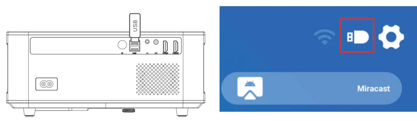 - Step 1: Connect the projector to the U disk, the U disk on the main interface of the projection screen will display the highlighted state.