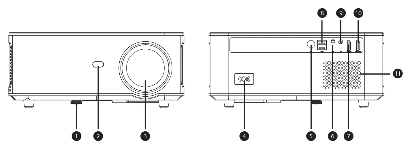 After adjusting the size and distance of the projector, please rotate the focus ring left and right to change the front and rear positions of the lens until a clear image is obtained.