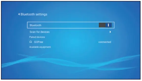 - Step 2: Find the Bluetooth settings on the setting interface, press OK to enter Bluetooth settings, press OK to turn on Bluetooth, the Bluetooth device list will be displayed