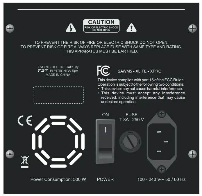 - FBT flying accessories are manufactured for their exclusive use with X-PRO systems and have not been designed for being used with any other speaker or device.