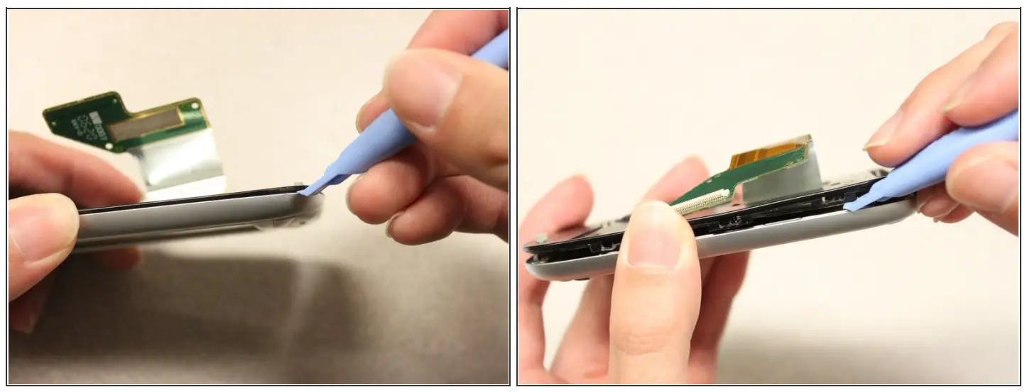 - Insert the plastic opening tool between the front panel and the rear panel and pry it open to reach the screen.