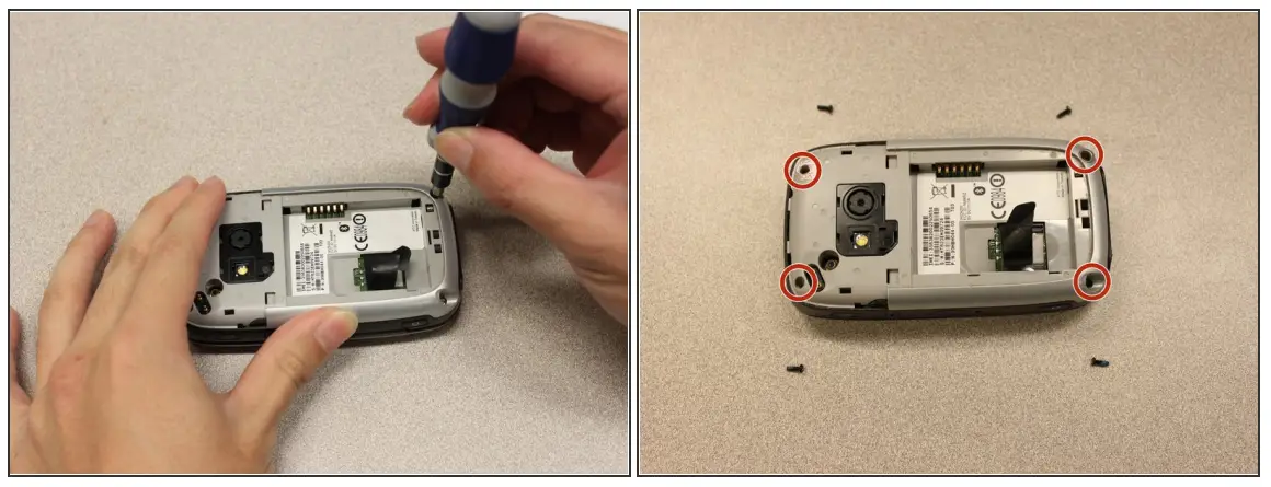 - Use the T5 Torx screwdriver to remove four 5mm screws that secure the back of the screen casing.