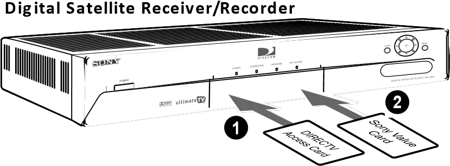 - You may insert the Sony Value access card into the front right hand slot of the Digital Satellite Receiver/Recorder to take advantage of its features. The Sony Value access card is not required to remain in place and can be removed/ re-inserted at any time.