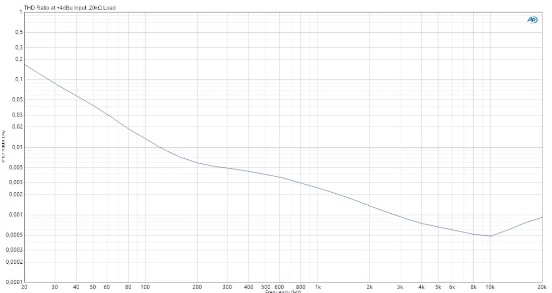 | THD (1 kHz, +4 dBu, unity, unweighted) | < 0.002 % |