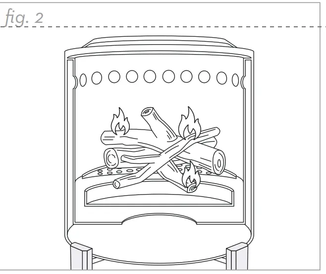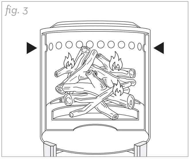- Never stack wood higher than Mesa XL’s interior vent holes. Doing so willcut off airflow, and will cause your fire to smoke. Make sure wood is resting under the holes, and that they are clearly visible after fueling. (fig. 3)