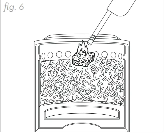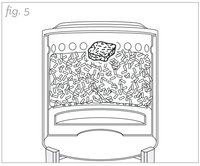 - . Place a fire starter on top and in the center of the pellets. (fig. 5)
