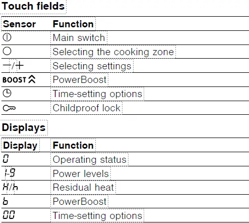 If appears in the displays, press and hold the sensor for the respective cooking zone and read the fault code. If the fault code is not listed in the table, disconnect the hob from the power supply and wait 30 seconds before reconnecting it.