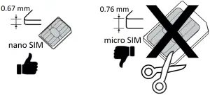 This device only accepts nano SIM card (4FF). Using a modified incompatible card that is thicker than a nano SIM card may damage the card itself, the card slot and corrupt any data stored on the card.