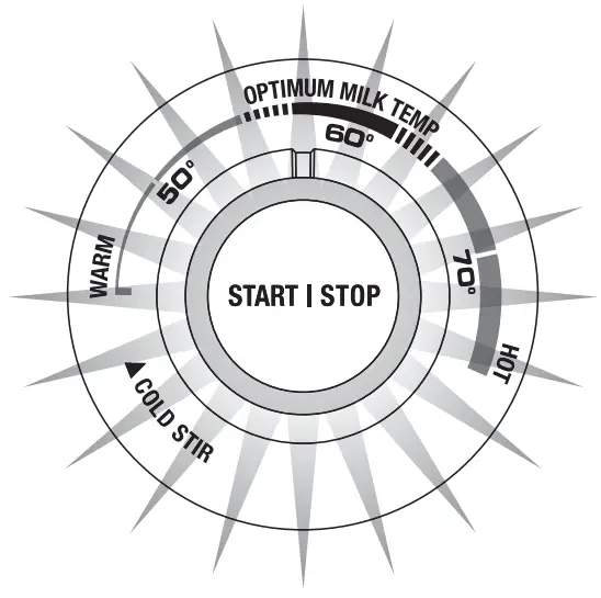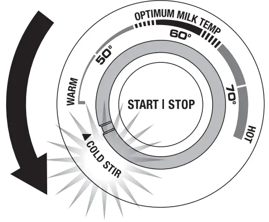 The ‘Cold Stir’ setting allows you to stir already cold or hot milk without additional heat.