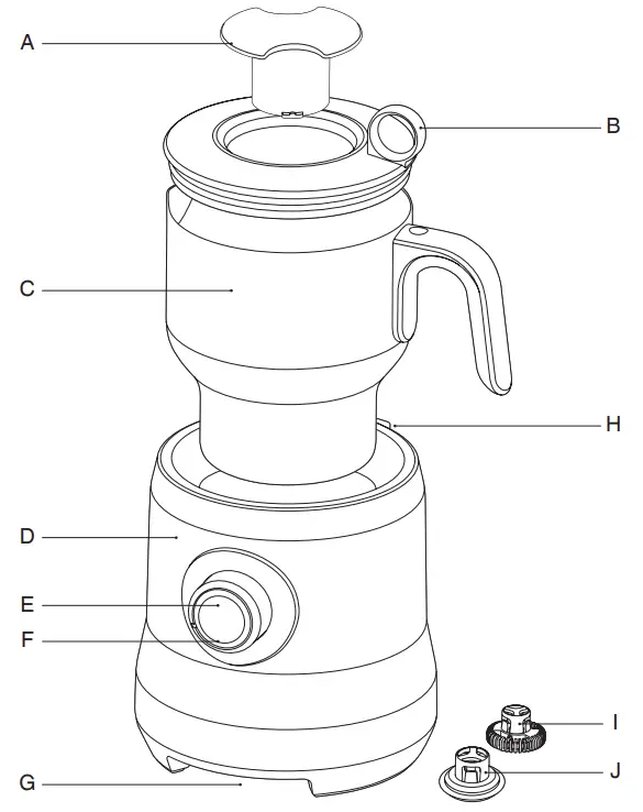 - Attach the jug lid securely to the jug before operation.