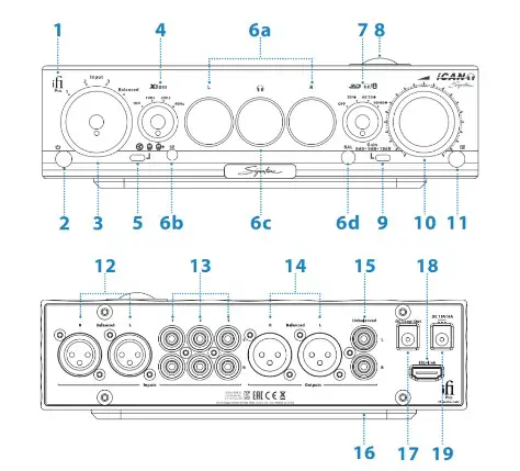- The XLR and RCA outputs on the back offer full preamplifier function, but are not switched off if headphones are connected. Nonetheless, the Pro iCAN Signature should be used either as preamplifier or headphone amplifier, as generally a mixed use setup is not recommended.
