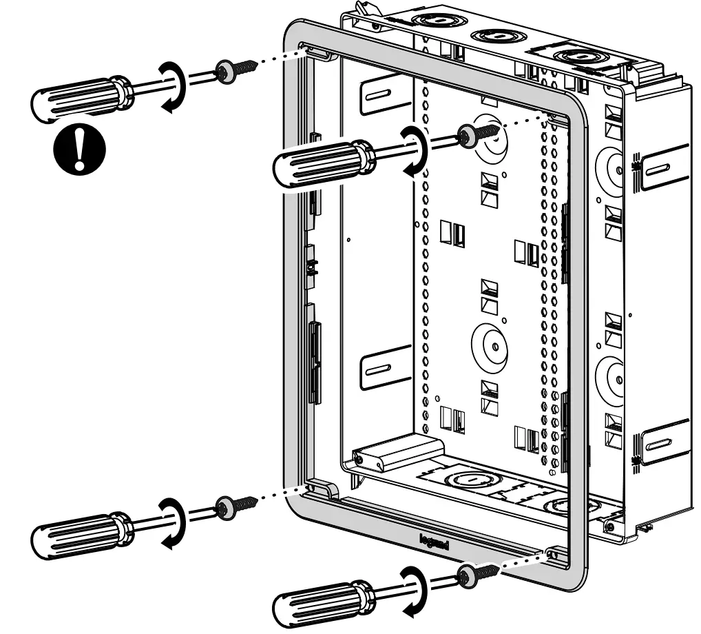 Use the included four (4) screws to affix the trim ring to the corresponding holes located in the enclosure frame.