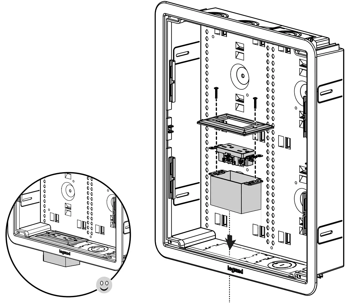 NOTE: Legrand offers both non-surge protected (P/N F7526) and surge protected (364569-02-V1) outlet kits. Only install standard size wall plates as oversized plates will not fit.
