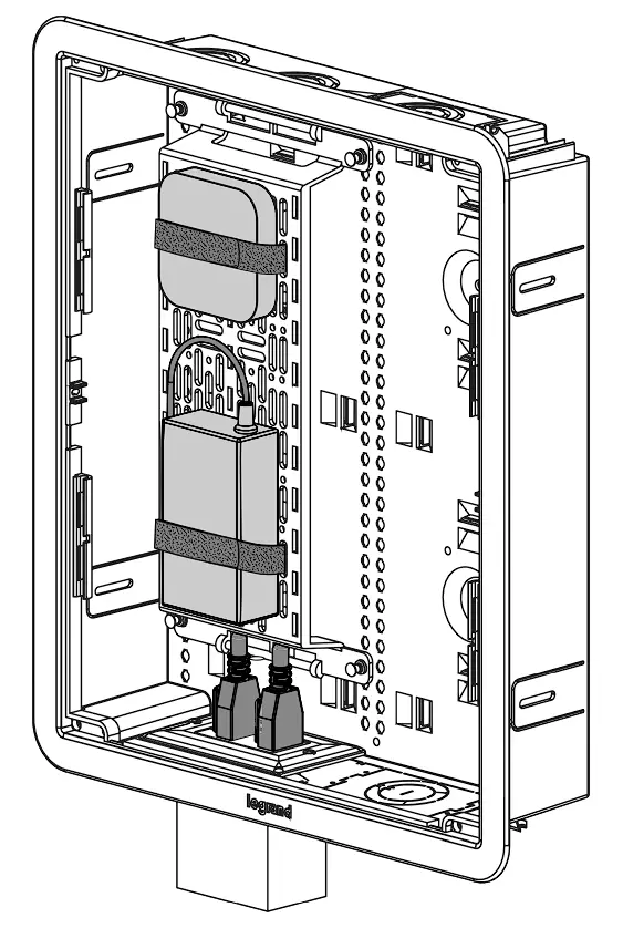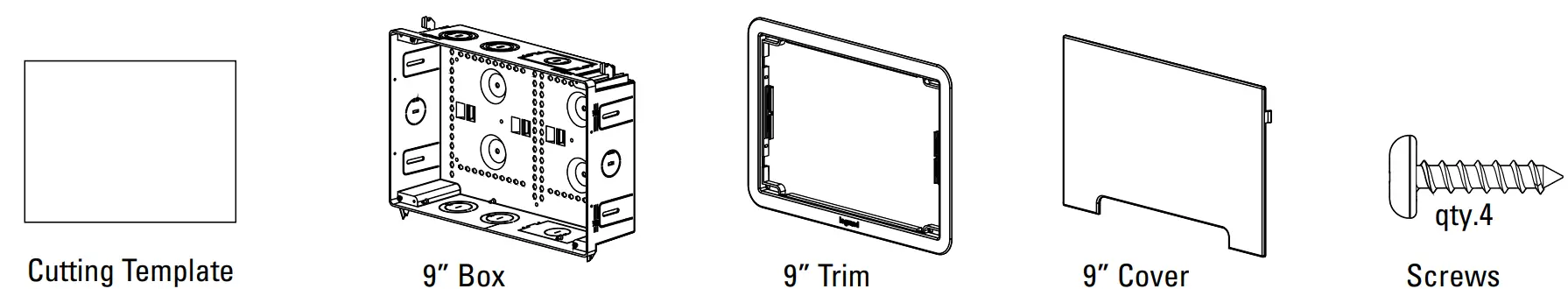 Locate enclosure indoors in a low humidity, climate controlled (0°C / 32°F – 49°C / 120°F) area within close proximity to power source. Remove cable knockouts as needed. When required, 2” rubber grommets (AC1034) are available to seal and protect openings. If mounting behind a TV, ensure box is positioned to be concealed from view by the display