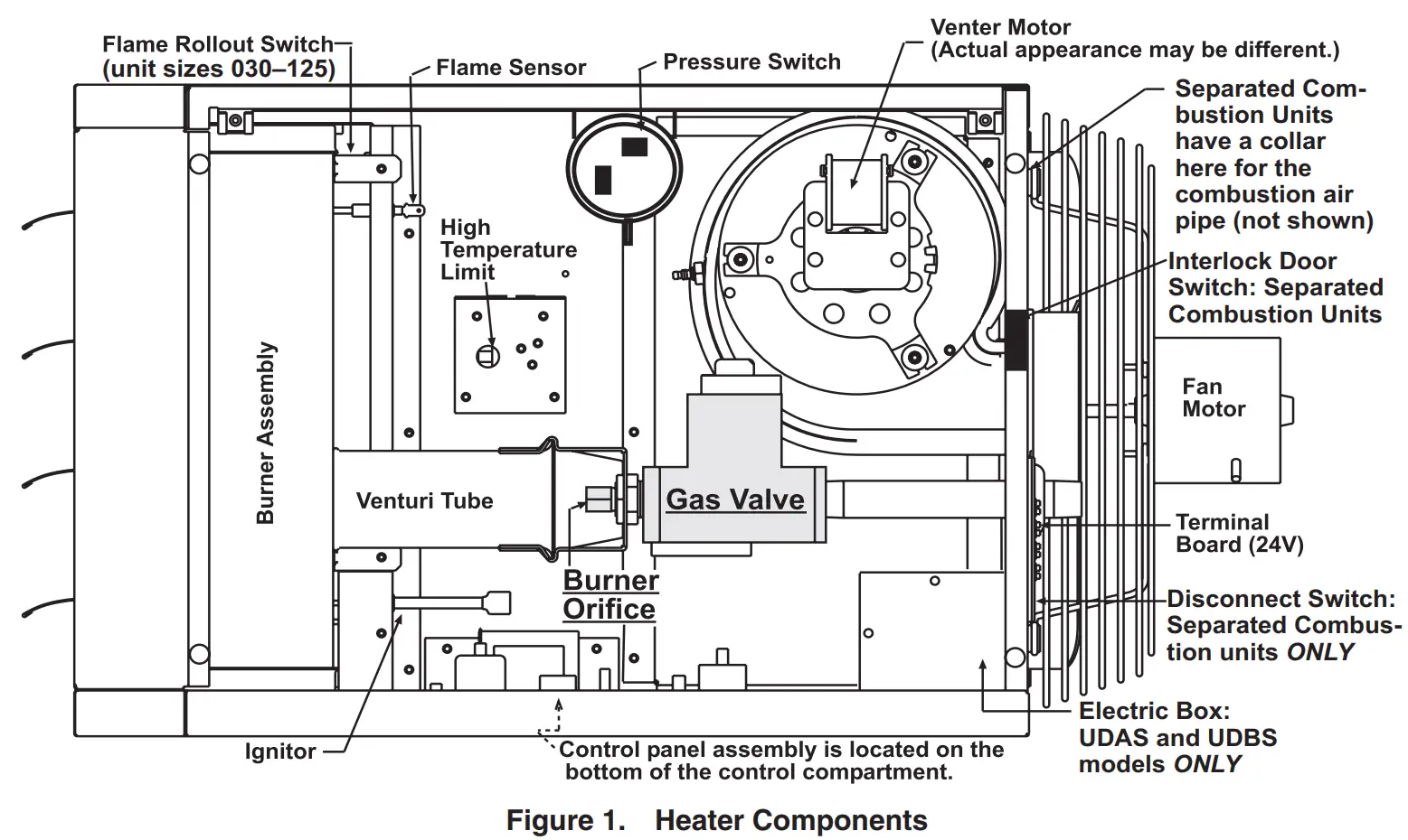 | UDX, UDAP | Standard power-vent fan-type | UDZ, UDAS | Separated-combustion fan-type |