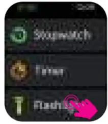 Click the fiashlight pattern and the watch screen will be highlighted.