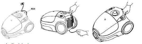 - If the dust indicator light turns red, immediately replace or clean the dust container.