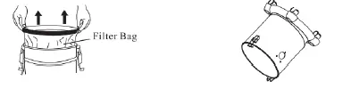 - Cloth: To remove the dust from the cloth dust bag, remove the pins on the bottom of the bag to release the dirt inside the bag, clean the bag and pin the bottom part again.