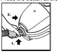 After removing the flexible pipe, open the cover by pressing the lock button and pull it upwards. Remove the dust bag.