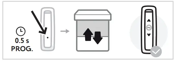 - Press and hold the PROG. button (A) on the programmed control point until the motorised product briefly moves up and down.