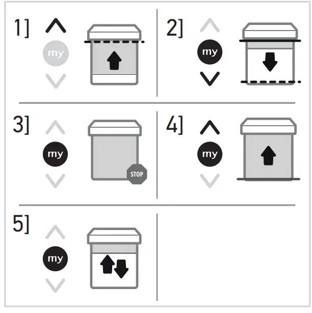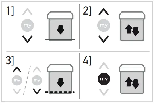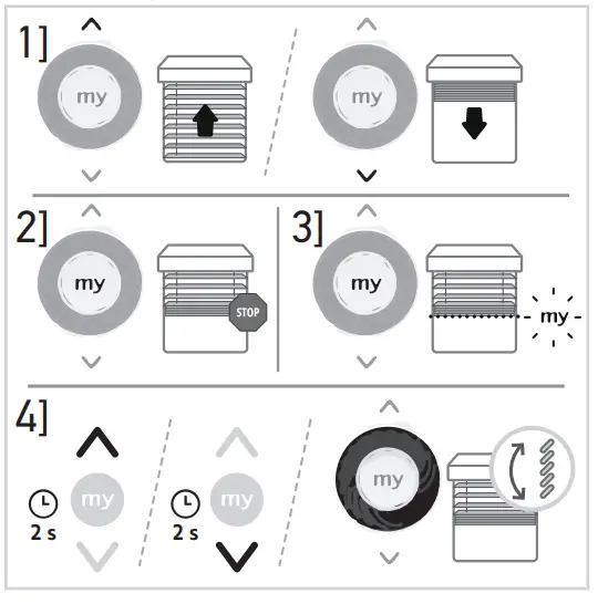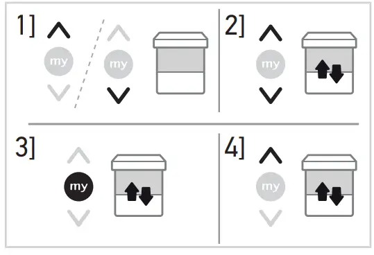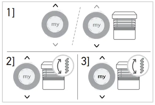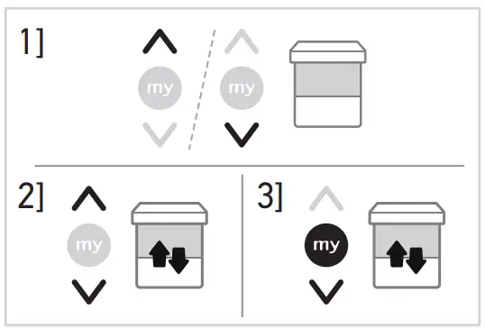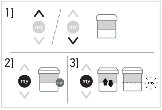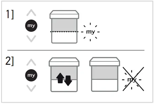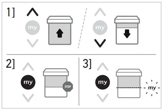 ➔ The motorized product starts to move and stops in the favourite position (my). - Press and hold my button until the motorized product briefly moves up and down: