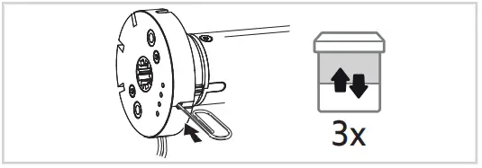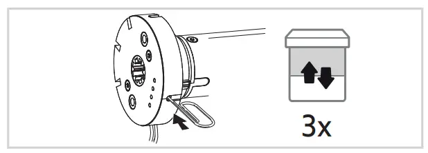 - Press my button until the motorized product briefly moves up and down to reverse the rotation direction and the green LED blinks 5 times.