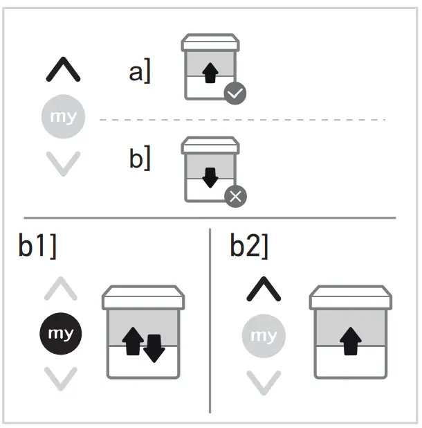 b1] Press my button on the control point until the motorised product moves up and down: The direction of rotation has been modified.
