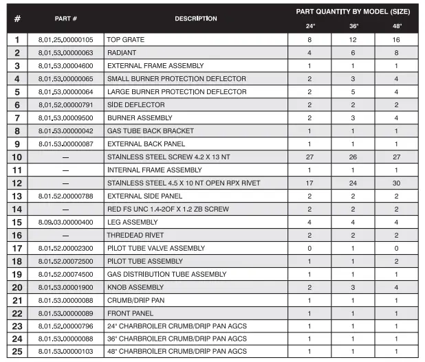| 16 | 8.01.53.00002500 | GRIDDLE PLATE ASSEMBLY | 1 | 1 | 1 | 1 | 1 |