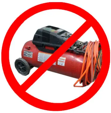 Air compressors that are designed for other uses like tire inflation (usually over 30 psi) can easily over-inflate and cause harm to your Sea Eagle that uses a much lower pressure. For this reason, we recommend using only the Sea Eagle manual or electric pumps.
