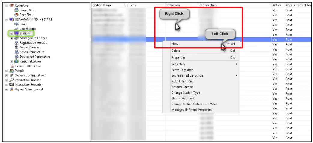 - Click on the Stations container, right-click in the list area, then select New.