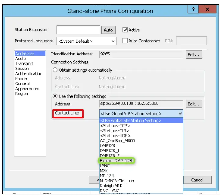 – where 192.168.254.254 in this example is the default IP address of the DMP Plus Series device. Up to 8 lines may be configured. Note that each line intended for use will require a unique extension to be specified as part of the configuration process in Section 2.0.