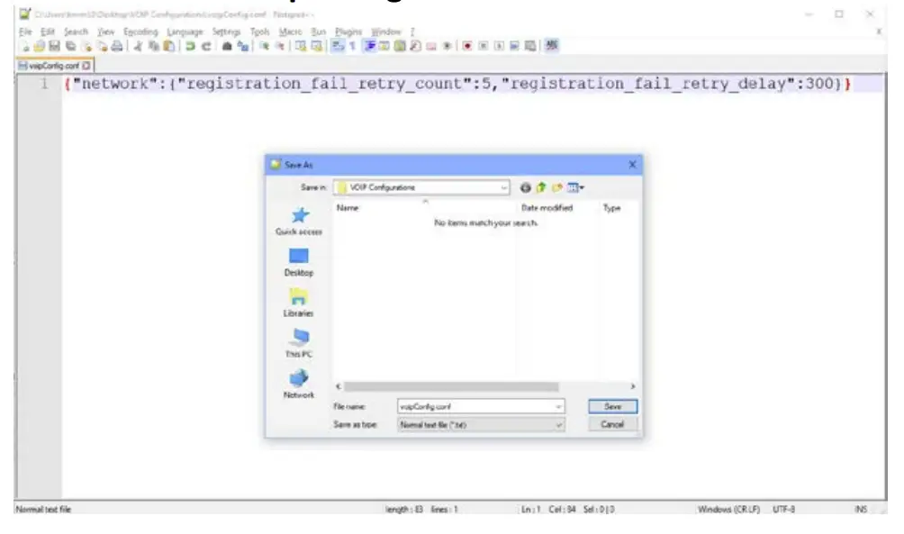 c. Save the file as voipConfig.conf.