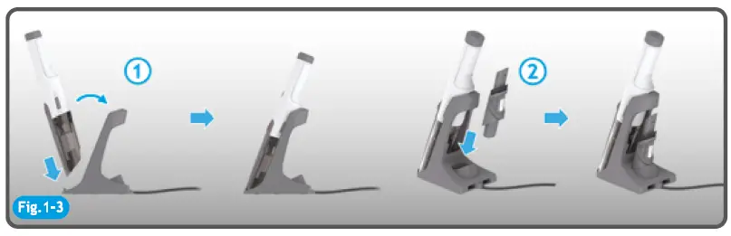Remove all the accessories from the cleaner, then put the product on the charger base and plug the charger into suitable socket outlet.