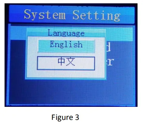 - Enter into the Language page and use the UP/DOWN button to select English or 中文 (Figure 3), press the ENTER button to confirm, press the MENU button to exit.