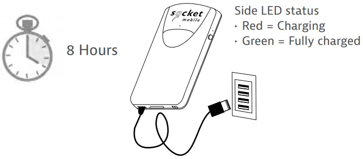 Note: The SocketScan comes with a pre-installed rechargeable Lithium-Ion battery, the initial full charging of the battery can take up to 8 hours.