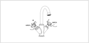 Hot valve(H): open by turning clockwise, close by turning counterclockwise;