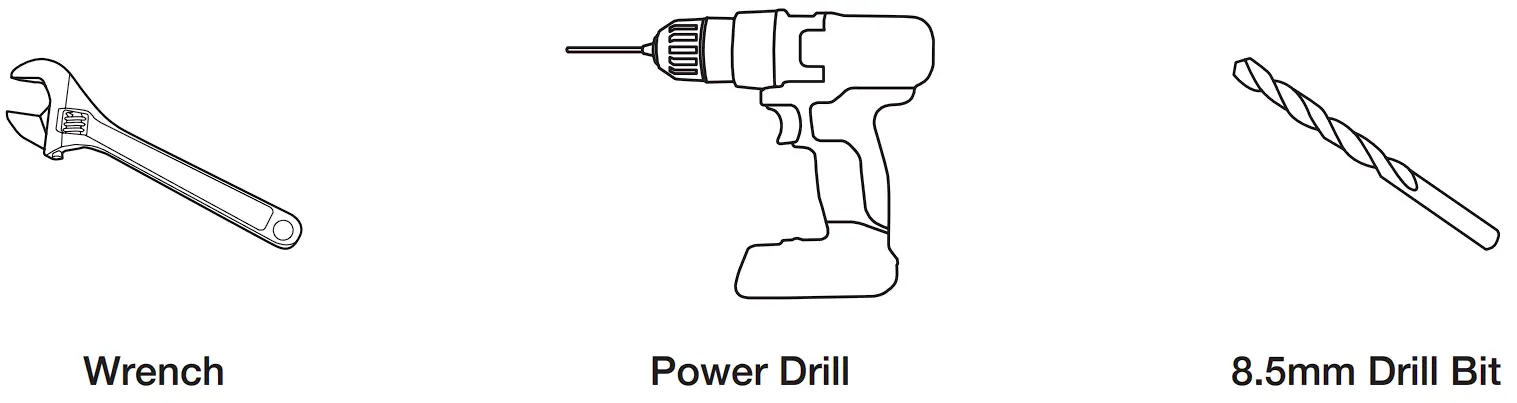 Drill Bit (not included) - Wrench (not included)