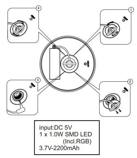 1 x 1.0W SMD LED (Incl.RGB) 3.7V-2200mAh