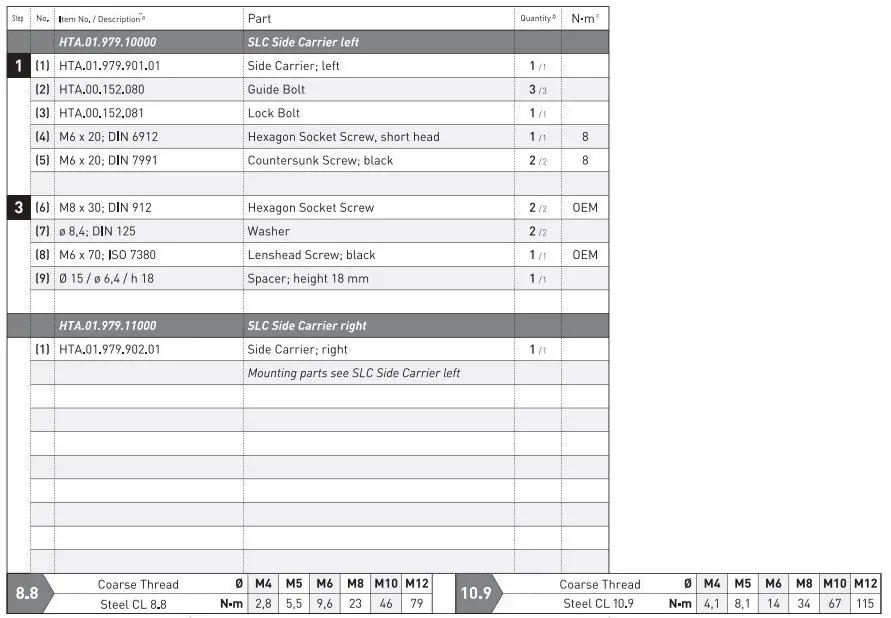 - WARNING: Secure all threads, unless otherwise specified, with medium- strong strength liquid thread locker. Torque specifications undefined by SW-MOTECH must be obtained from the vehicle manufacturer or by a certified motorcycle workshop!