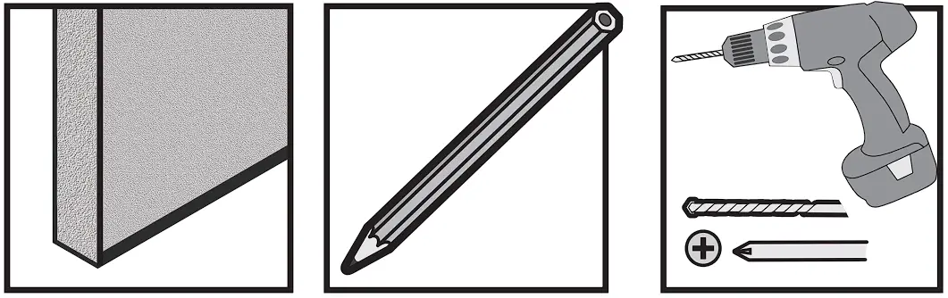 The process is similar to attaching to wood as described above. You will however need to use suitable screws/bolts/wall plugs for the type of wall you are mounting onto (if in doubt ask for advice at your local DIV/hardware store and remember to make sure that the heads of the screws/bolts are the correct size to hold the bracket securely in position).