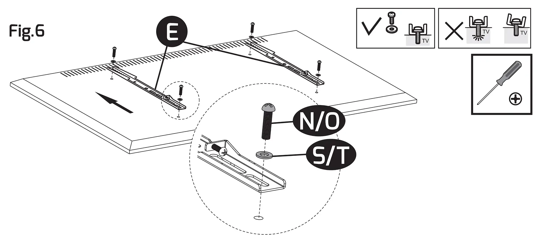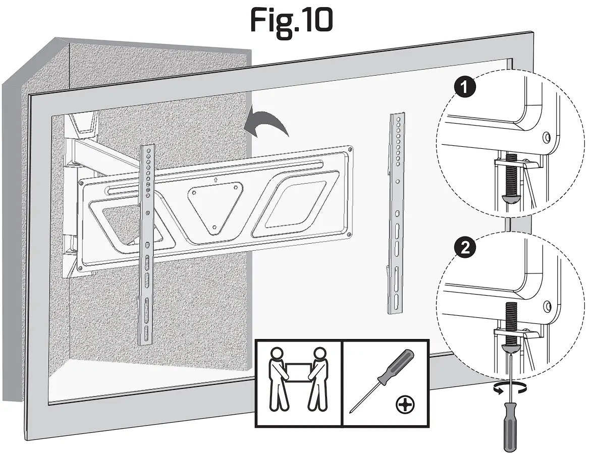 with a screwdriver to secure the brackets to the TV plate as shown opposite in Fig. 10.